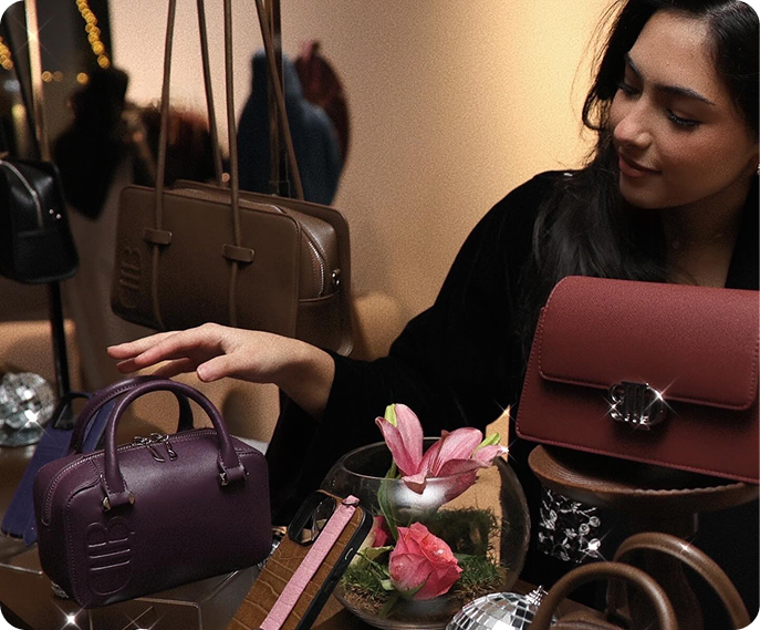 Each design begins with a vision in Riyadh and is brought to life by master artisans. Every stitch, every material choice, speaks to our commitment to excellence. Our vegan leather collections are meticulously crafted, ensuring that each piece stands out and endures.